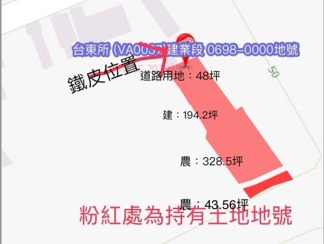 台東知本火車站重劃區內 ~土地大優惠現推出位於台東知本火車站重劃區的優質土地,總面積達 614.39坪,無論是自用還是投資皆具超高潛力!此土地綜合涵蓋道路用地、建地及農業用地,土地用途多樣,適合各類需求。該地段位於台東知本火車站重劃區內,交通便利,區域發展潛力極高,未來將成為當地發展的重點區域。特色亮點:總面積:614.39坪,可靈活規劃開發。土地用途包括 道路用地、建地及農業用地,適合各類型需求。地處台東知本火車站重劃區,交通方便,未來升值空間大。坪數大,開價比市面低,物超所值,無論是自用或投資皆為難得機會!若您正在尋找高潛力的土地,這塊位於台東知本的土地無疑是您最佳選擇。